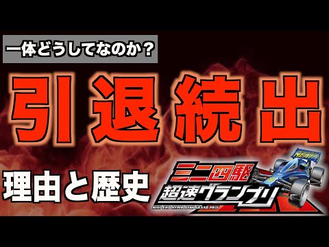 ミニ四駆超速グランプリの引退者が止まらない理由やその歴史、なぜこんなことになっているのかざっくりとまとめてみました。最近の出来事や過去の出来事を掻い摘んでおりますので知らない人も知ってる人も最後までみてくださると嬉しいです。チャンネル登録とツイッターも是非